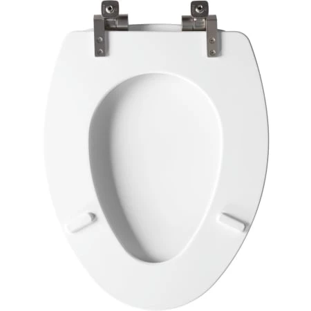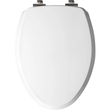 This Mayfair Benton enameled wood seat in White features a polished design and brushed nickel hinges that complement bath decor. The STA-TITE Seat Fastening System installs easily and keeps seat securely attached to the bowl. The Whisper Close feature closes slowly and quietly, eliminating slamming and pinched fingers. Superior, high-gloss finish adds beauty to your décor while resisting chipping and scratching.