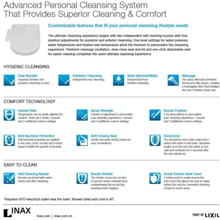 - Anti-bacterial properties are applied to the seat, cover, nozzles, and control panel for added protection to inhibit bacteria growth