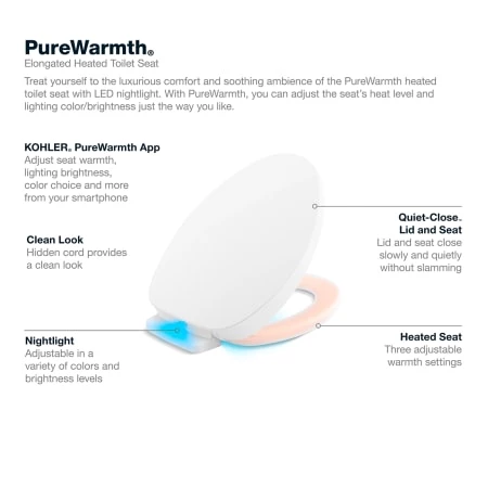 - Compatible with the Kohler Purefresh app to adjust seat warmth and lighting brightness to your daily schedule