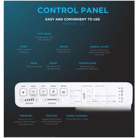 The TOTO® WASHLET®+ Ready WASHLET® C2 Elongated Bidet Toilet Seat with PREMIST delivers ecology-minded luxury in a streamlined design. Instead of traditional toilet paper that can sometimes be rough and often ineffective, the WASHLET quickly provides comfortable warm water cleansing at the touch of a button. The TOTO WASHLET+ Ready C2 elongated bidet toilet seat is designed to conceal the WASHLET power cord and water supply hose for a seamless installation. Part of the newly redesigned C Series, the WASHLET+ C2 is fully automated, featuring a soft rear spray, rear cleanse, and front cleanse with the option of an oscillating stream. The controls are located on a convenient arm control panel. The WASHLET features a heated SoftClose® seat with three temperature settings, three water temperature settings, and five water pressure settings. The C5 WASHLET+ is designed with an automatic air deodorizer and a warm air dryer with three temperature settings. Includes mounting and connection hardware. WASHLET+ Ready WASHLET models are designed to work with TOTO T40 WASHLET+ Ready toilets only.